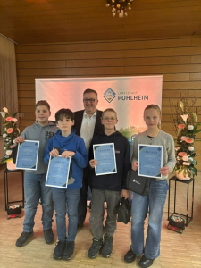 Unser Jugendmannschaft U 12 ist für ihre hervorragende Leistung im Teamsport 2024 von der Stadt Pohlheim geehrte worden. Die Jugendlichen haben mit sehr großem Engagement am Teamtennis teilgenommen, dafür auch viel trainiert und dies hat sich gelohnt. Der Vorstand gratuliert dafür Helen May, Leni Maras, Jonas Gülec, Jacob Wenig, Leon Schilling und Aeneas Herrn.